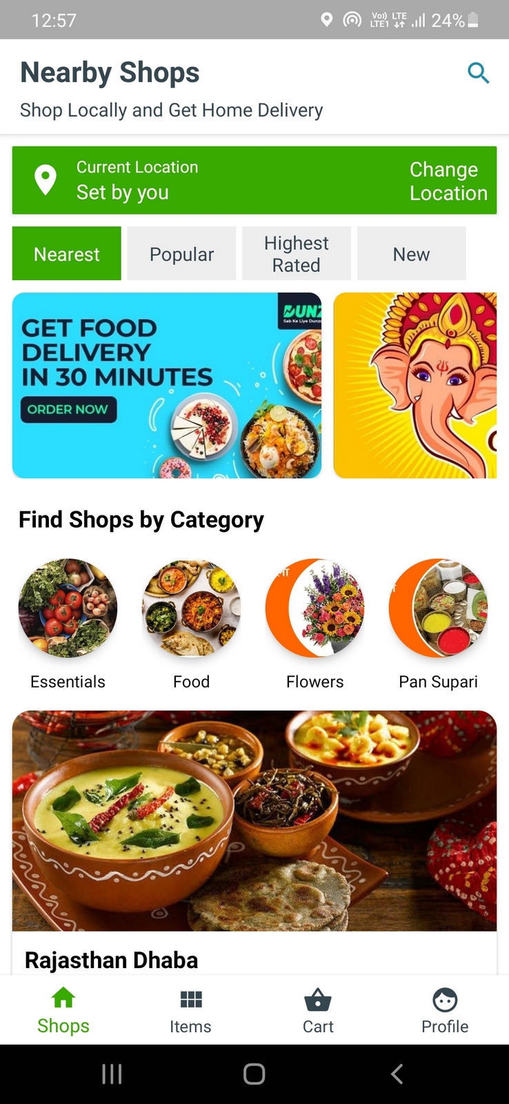 Nearby Shops can also be used as a food Delivery platform where restaurants can use it to deliver food.