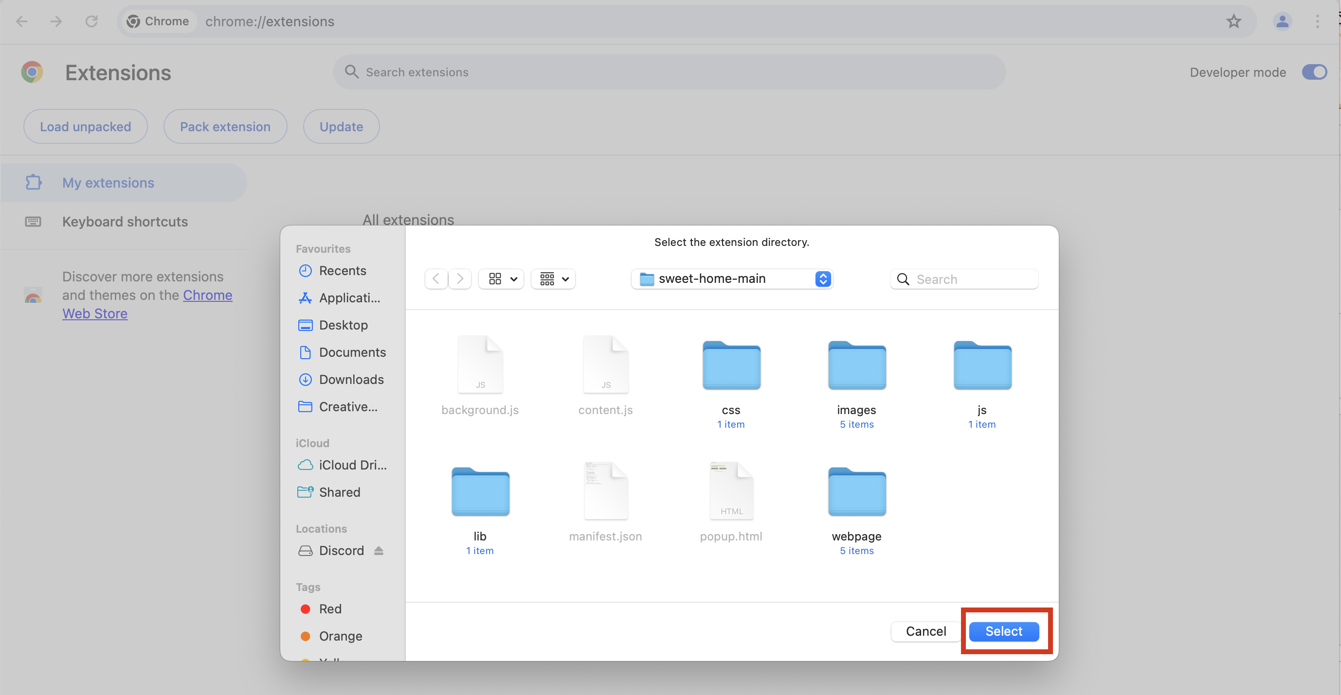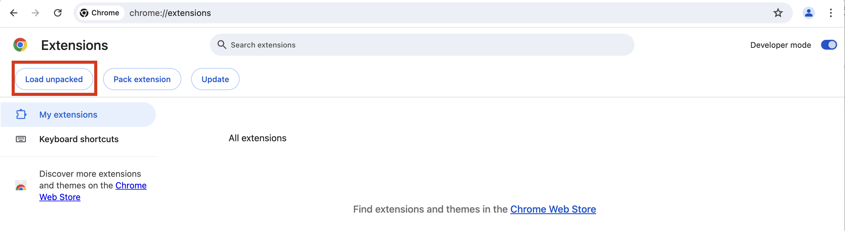 - Click on Load unpacked and select the unzipped folder of the downloaded extension files.