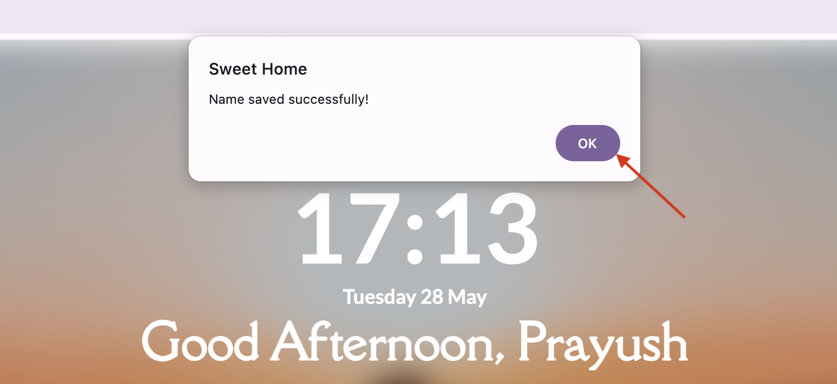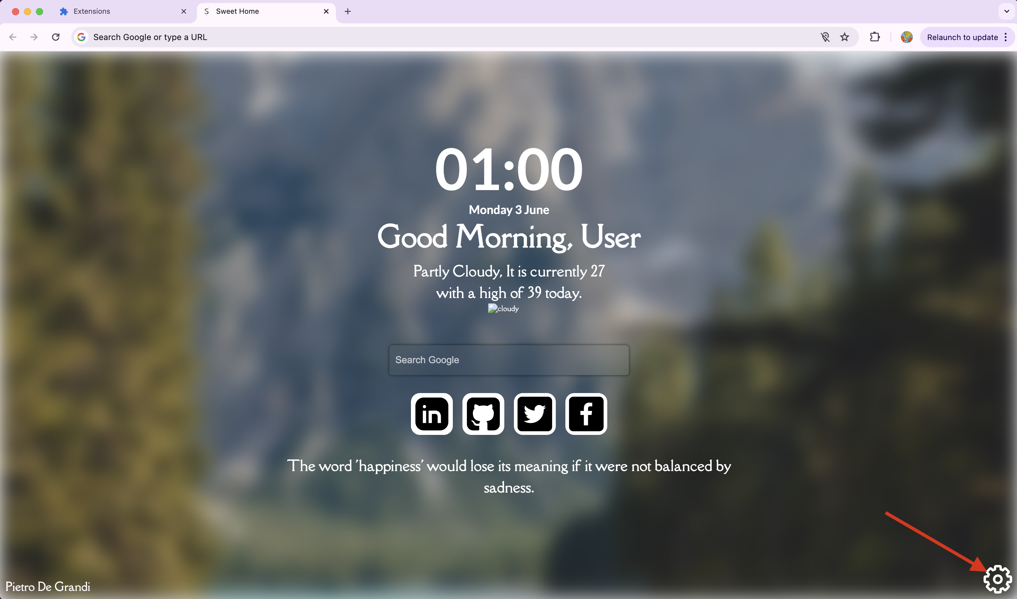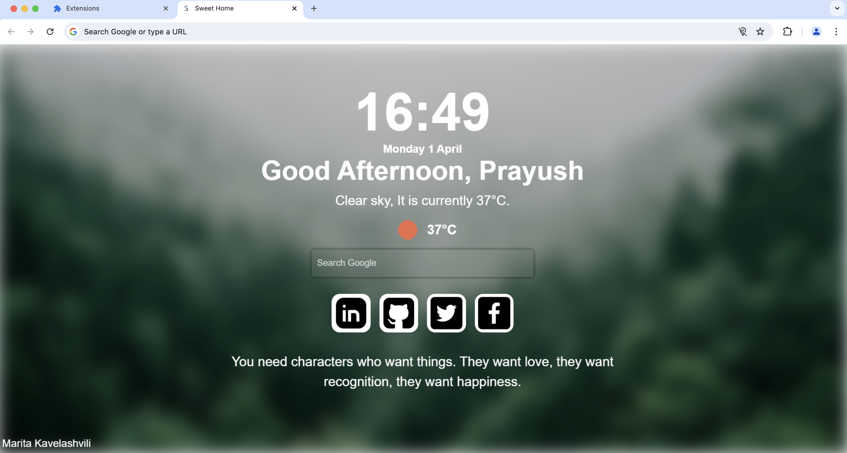 After installation, every new tab or window you open in Chrome will display the Sweet Home default page with your name. Enjoy your new browsing experience!