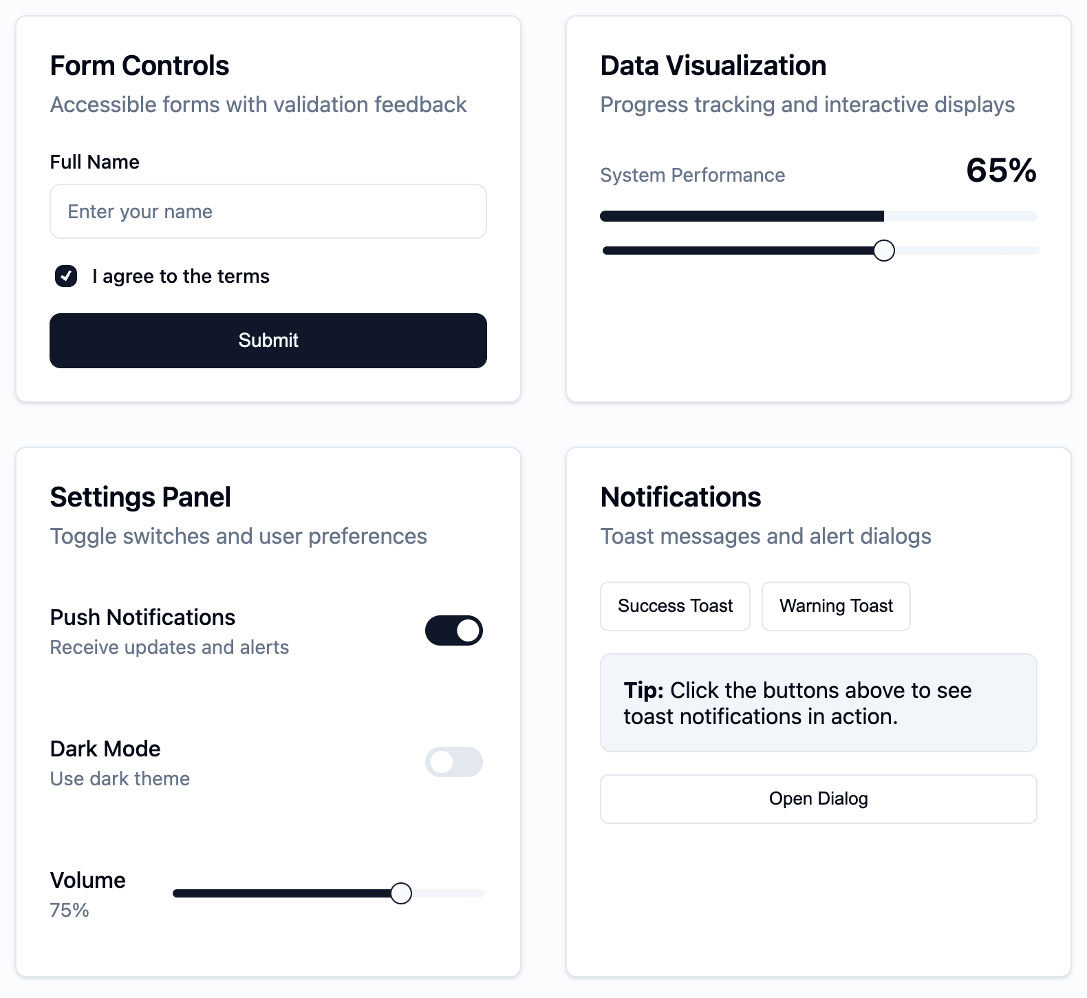 - 🚀 Tiny Bundle: ~5KB JS + ~6KB CSS for all components