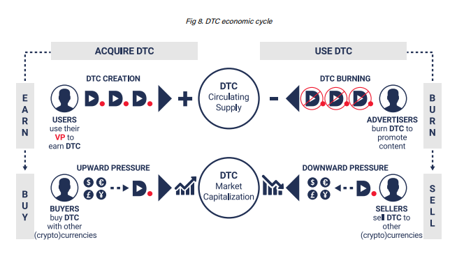 DTC is a utility token created to serve best to video content creators , you can use it to post, vote or tag and promote videos on Dtube platform. You can hold your DTC to generate VP (Voting Power). Each unit of DTC produces for its holder +1 unit of VP per hour You can spend your VP by tagging some content or use it to curate others content to get DTC from curation rewards, the more VP spent on these actions will generate more and it will have more impact on content exposure You can also burn DTC to promote your videos all the DTC used in this process will be burned which means it will be deleted from the circulating supply and it will increase the scarcity of DTC. Promoting content will provide more exposure and that may lead to getting more rewards on the video - if it is proved to be a successful piece of content.