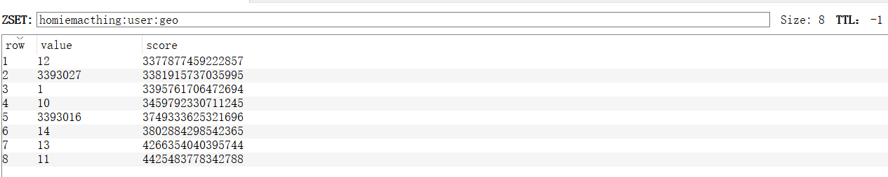 - 在 User(用户)表中添加两个字段 longitude(经度)和 dimension(维度),用以存储用户的经纬度坐标。因为Redis GEO 通过每个用户的经纬度坐标计算用户间的距离,同时其 Redis 数据类型为ZSET,ZSET 是一个有序的 List 类似 Java 的 SortedSet。在此场景 value 就是用户id,score 是经纬度信息( ZSET 根据 score值升序排序)。