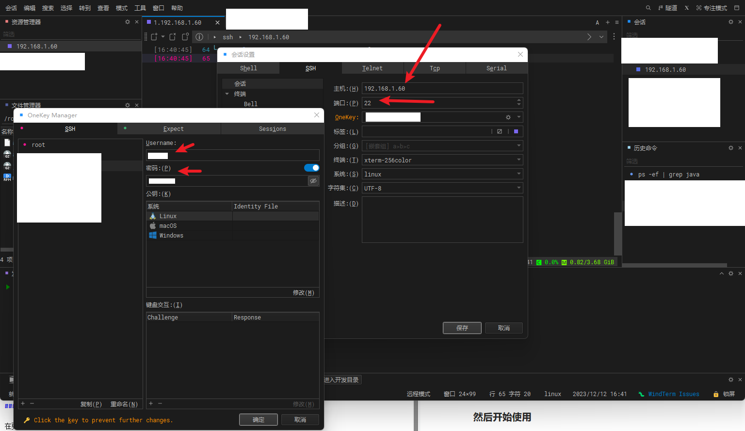 在要访问的主机输入宿主机的IP地址,然后写你虚拟机的用户名和密码