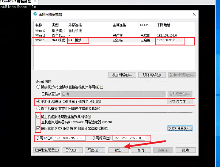 点击确定之后,从这几个方向验证以上这些配置是否成功 先查看下宿主机的ip