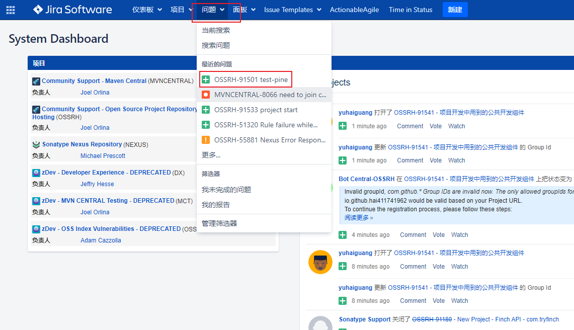- 新建申请:https://issues.sonatype.org/secure/CreateIssue.jspa?issuetype=21&pid=10134