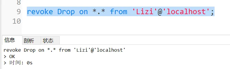 上述回收了用户删除数据表或数据库的权限。
