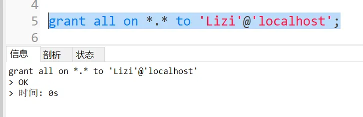 刷新:flush privileges;