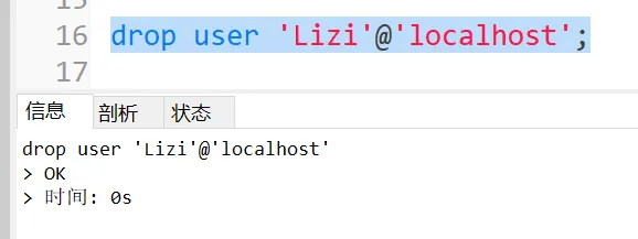 语法:drop user '用户名'@'IP';