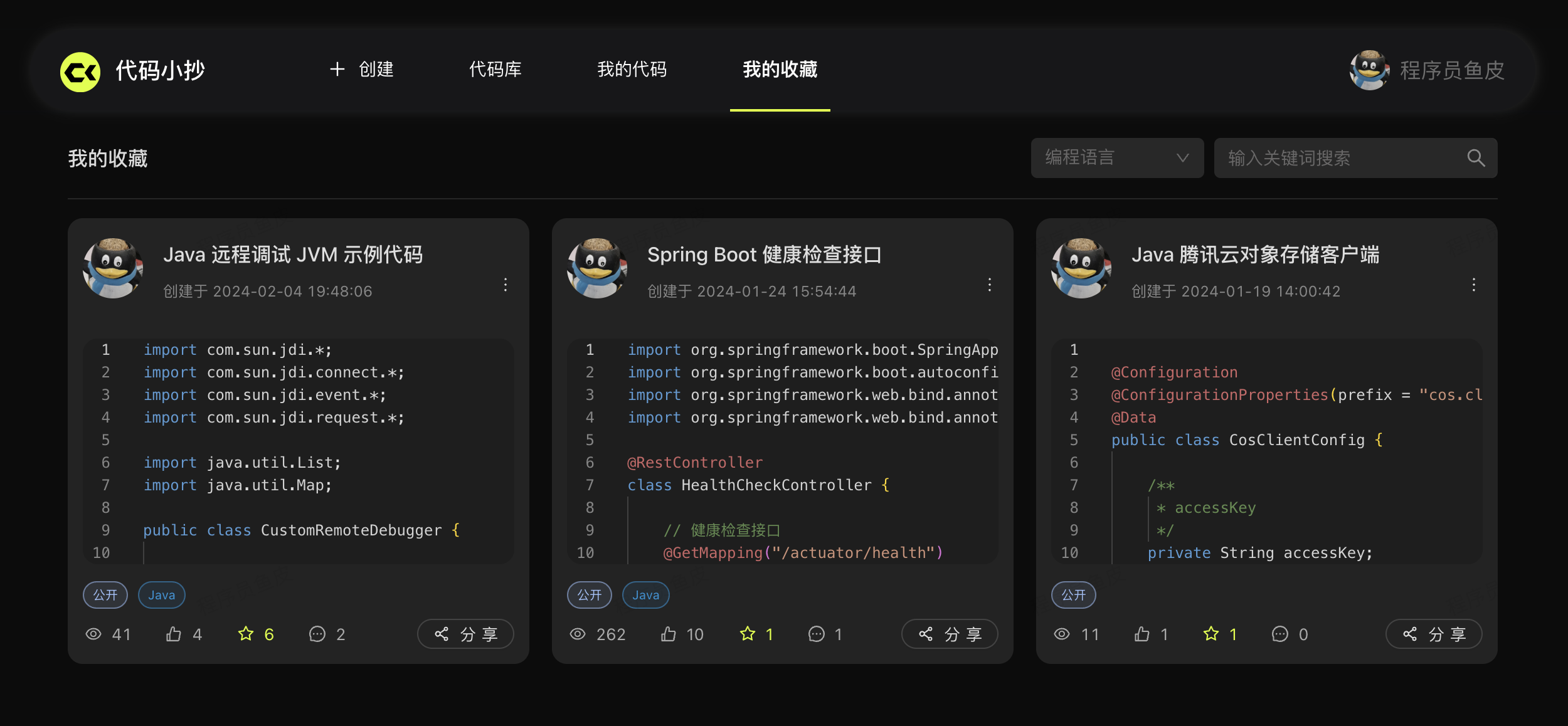 首先,大家可以快速创建和分享自己的多个代码片段。