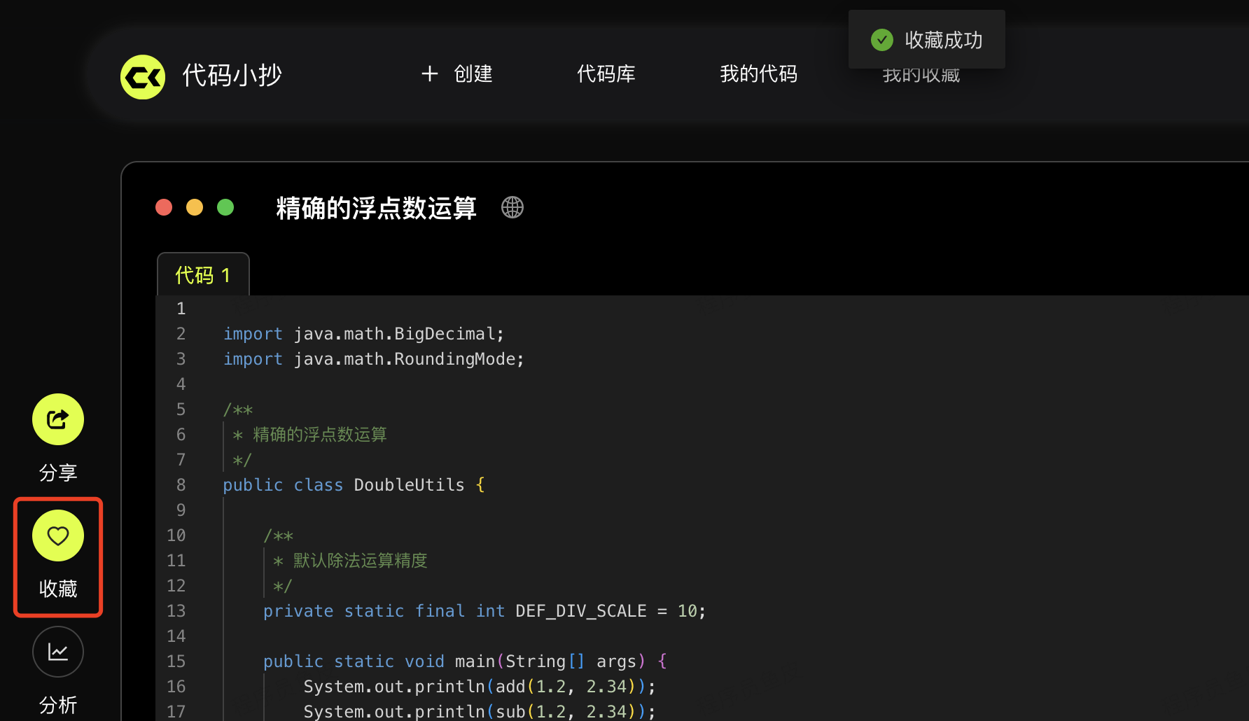 可以收藏代码,便于学习: