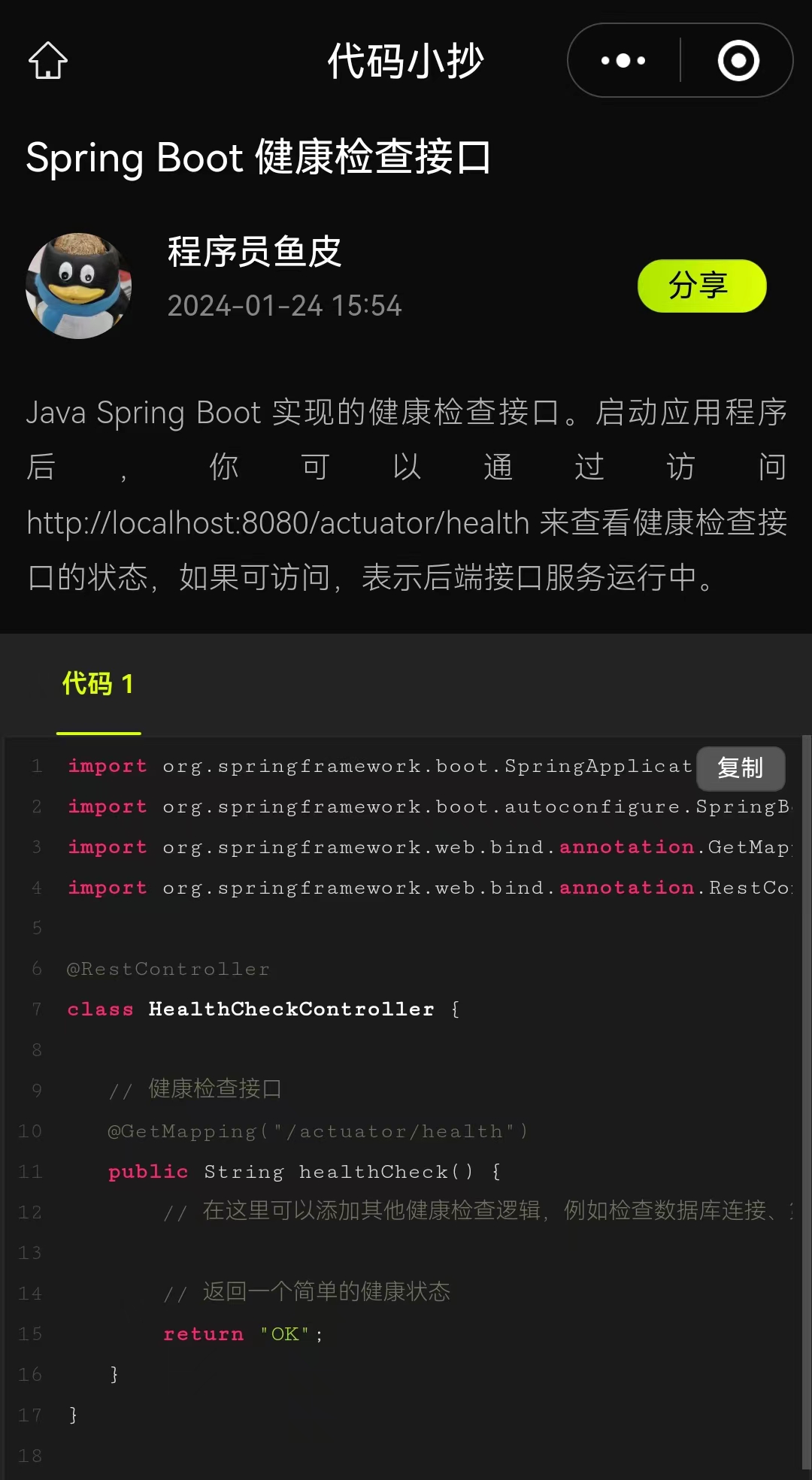 前段时间我在公众号发文宣传了团队新开发的小工具《代码小抄》,这是一个简单易用的代码分享工具,可以快速、跨设备地自由分享代码。