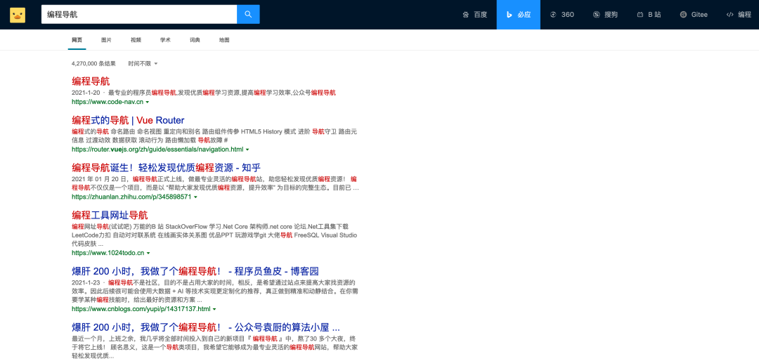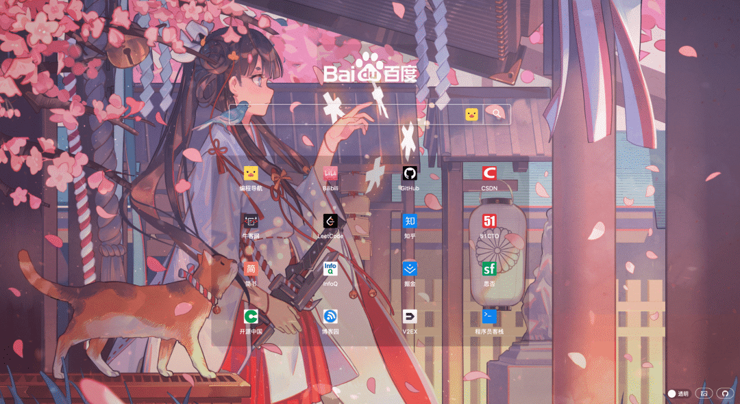 整个编程主页就是这样,以后会支持更多的主题、更多的搜索引擎,同时继续改进页面和交互效果,给大家一个接近完美的主页使用体验。