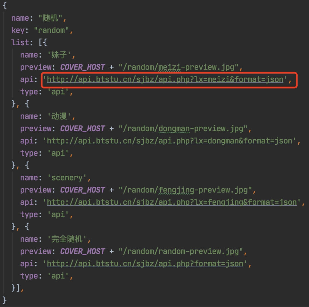 为了解决浏览器跨域的限制,还使用了 JsonBird 免费的请求代理,直接将请求随机图片的地址作为参数拼接在 JsonBird 地址后就行了!代码如下: