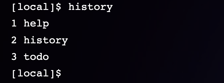 为了更快捷地操作,我开发了快捷键功能。和 Linux 终端一样,按 Ctrl + L 键可以清屏;按上下键可以切换历史命令。输入 history,就可以看到所有执行过的命令,使用 ! 就能重新执行某命令。