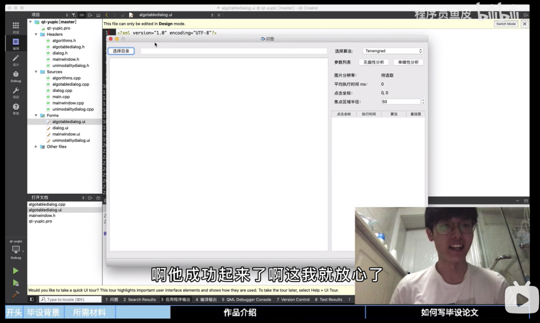 造化弄人,本来毕业设计是想用自己熟悉的技术快速完成,没想到最后竟然被分配了一个我完全没接触过的领域 —— 图像处理算法研究。研究课题的目标是设计一种算法,能够从一大组显微图像中找出指定焦点位置最清晰的图片。为了优化算法,我还用 C++ 和 Qt 这两个之前没深入学习过的技术来开发了一个实验软件。