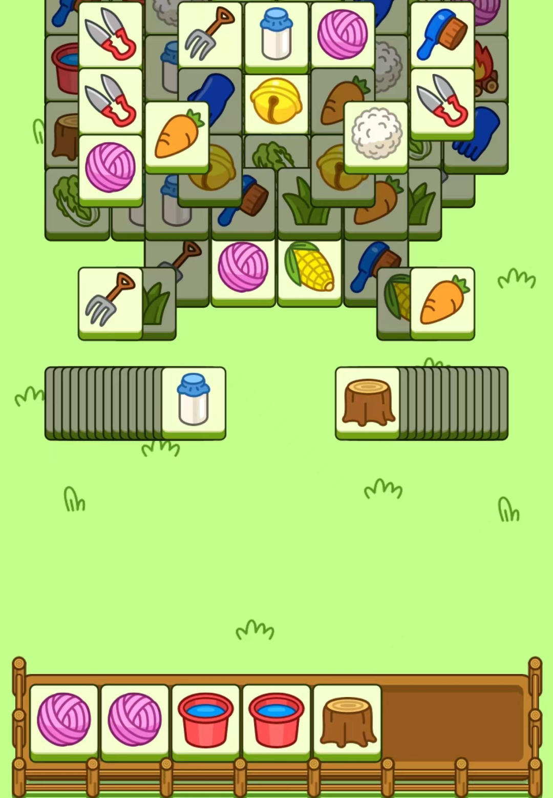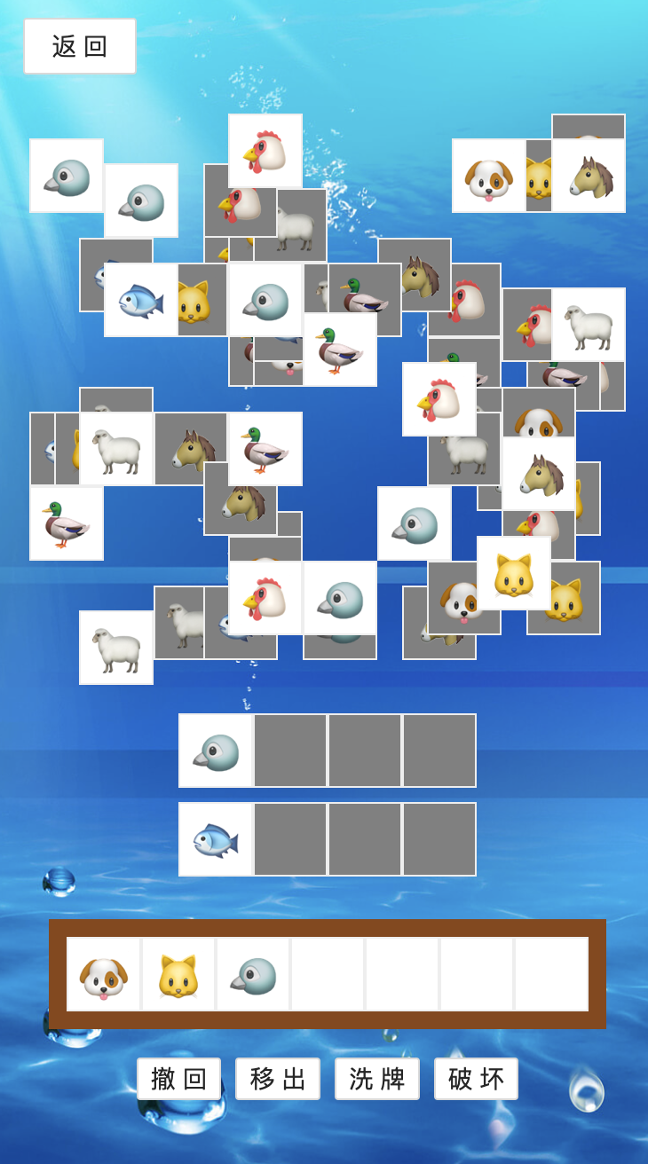 游戏的玩法非常简单,类似 “消消乐”,从一堆方块中找到相同图案的 3 个方块并消除即可。