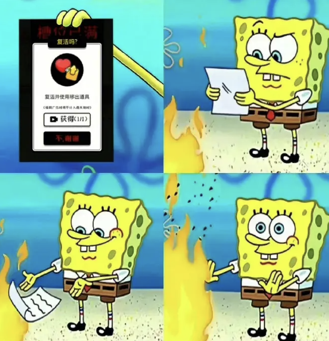 不过作者很良心,给了大家逆天改命的机会,看广告可以使用道具和复活。