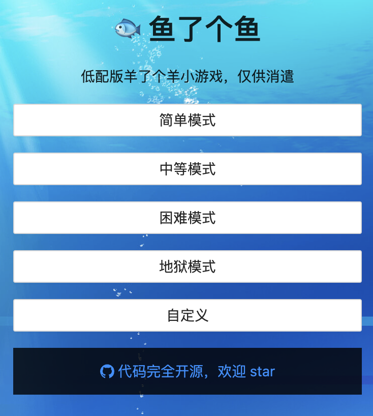 熬夜肝了几个小时,游戏的雏形就做出来了,这两天又打磨了一下,才正式上线,并且把所有代码完全开源了!