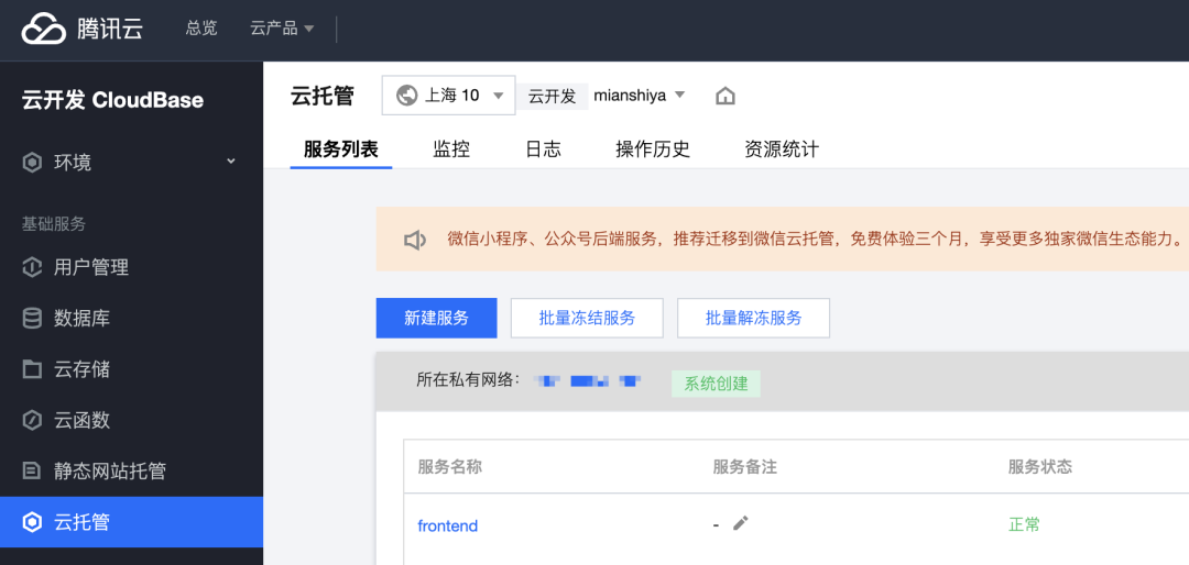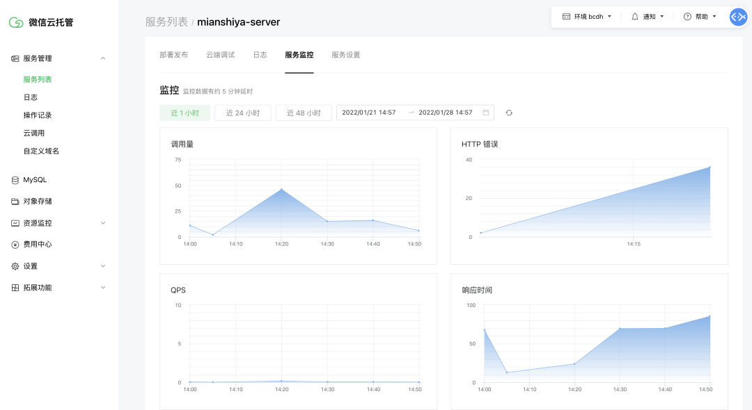 写好代码后,所有的后端服务都和前端一样,使用 Docker 容器技术,放到 微信云托管 平台进行部署,除了天然支持负载均衡、打通微信外,什么自动发布、版本控制、灰度发布、日志检索、实时监控,各种能力基本都一手操办了。
