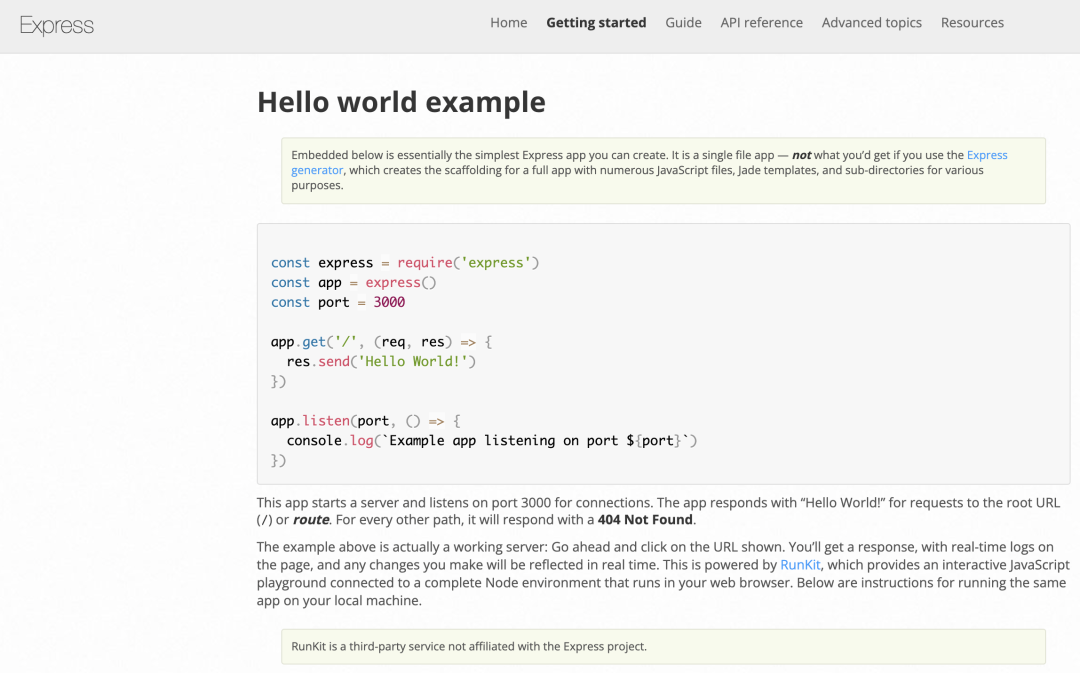 Express 用起来非常简单,几行代码,监听个端口,服务就跑起来了:
