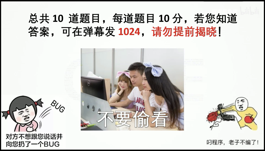 视频中,有 10 个和程序员有关的小问题,每题 10 分,大家可以自行选择答案,系统自动结算分数。最后,会根据分数给大家颁发 “精美奖品”。