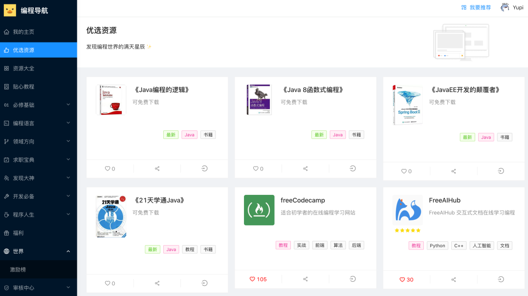 当然,还有很多,大家可以先到 编程导航 上找找看,后面以推文的形式慢慢给大家推荐~
