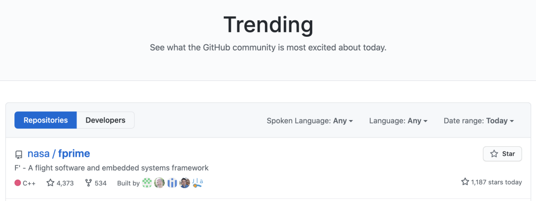 GitHub官方提供的项目趋势统计,能够看到一段时间内项目和开发者新增star数的排行。还支持选择语言、编程语言及时间范围,帮你发现优秀、有潜力的开源项目。