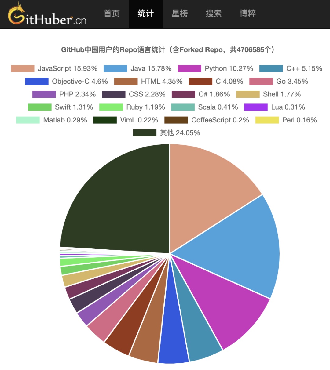 发现优秀 GitHub 开发者的网站,可以查看国内仓库语言使用情况统计、GitHub 开发者排名等,还能查看自己的排名哦~