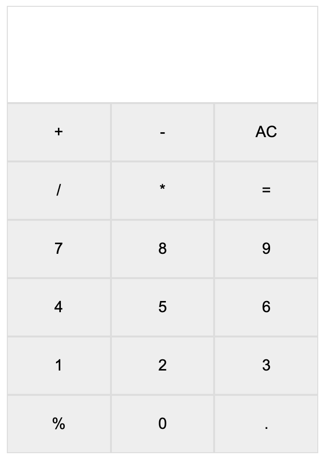 第一步当然是先写出基本的 HTML 结构,比如显示框和每行三个按钮,代码如下: