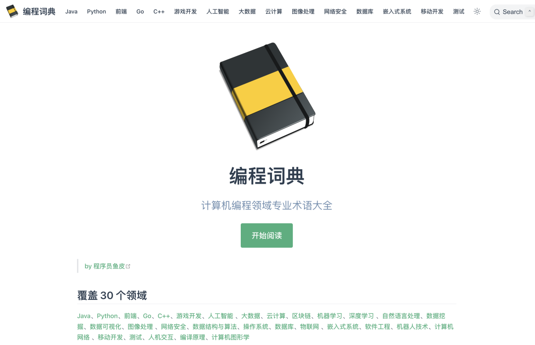 前几天刚刚给大家分享了我自己做的编程词典网站,这个网站收集了 30 个主流编程领域、900 多篇编程相关的术语文章: