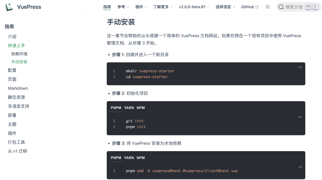 VuePress 的用法非常简单,我们只需要跟着官方文档的流程,先初始化一个 Vuepress 的项目: