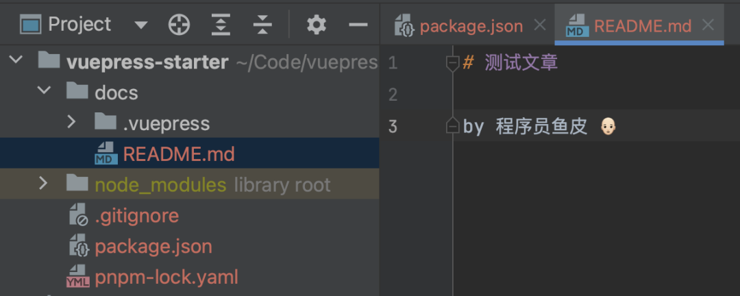 然后创建 docs 目录用于存放文章,再随便新建一篇文章: