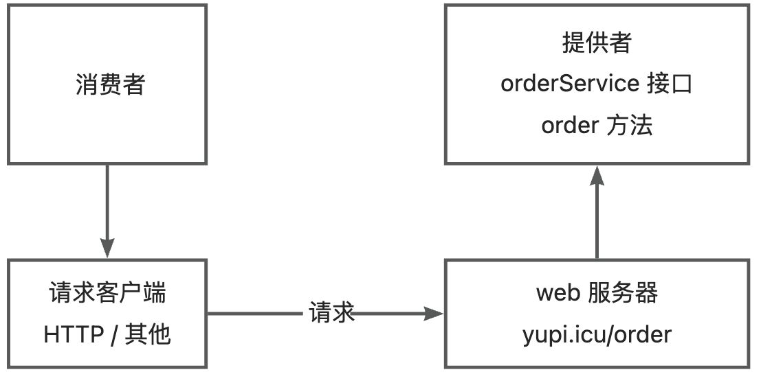消费者想要调用提供者,就需要提供者启动一个 web 服务,然后通过 请求客户端发送 HTTP 或者其他协议的请求来调用。