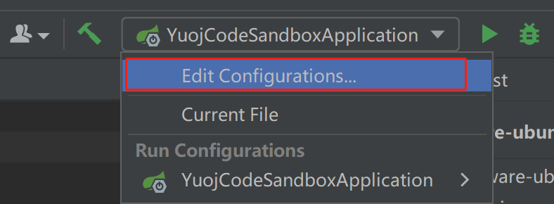开启远程调试的方法很简单,首先在 IDEA 右上角找到编辑配置: