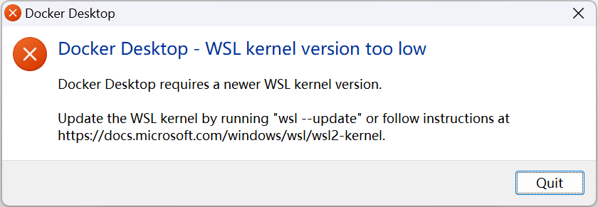 比如 WSL 内核版本太低: