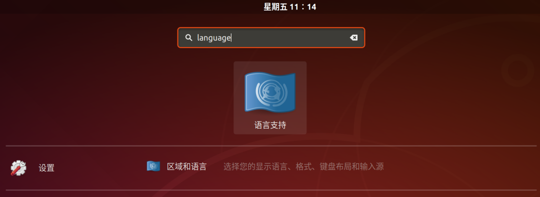 重启后,同样是按 windows 键,弹出功能搜索按钮,输入 "language",打开 "区域和语言":
