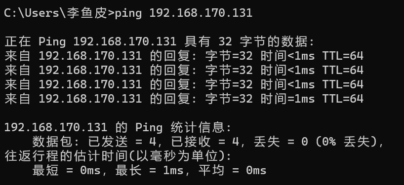 要确保我们本地的 Windows 电脑能够连接到 Linux 虚拟机。