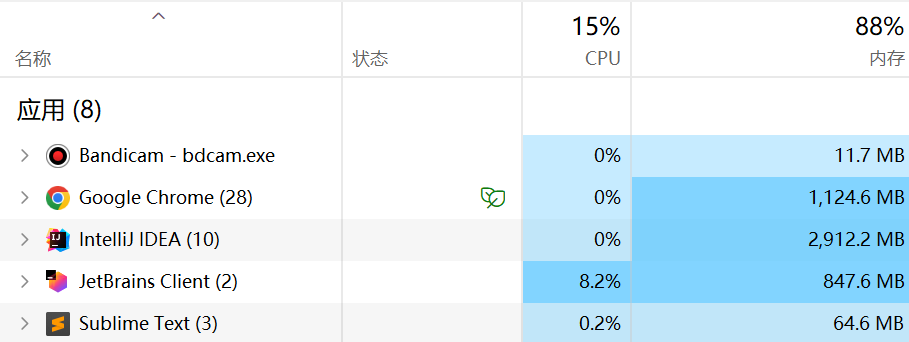 打开任务管理器,可以看到 JetBrains 的 client 非常 “轻量”: