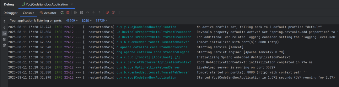 能够看到项目成功启动:
