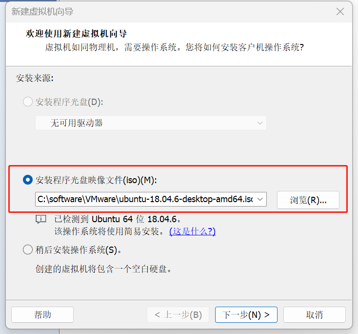 点击创建新虚拟机,然后它让我们提供一个 Linux 操作系统的镜像: