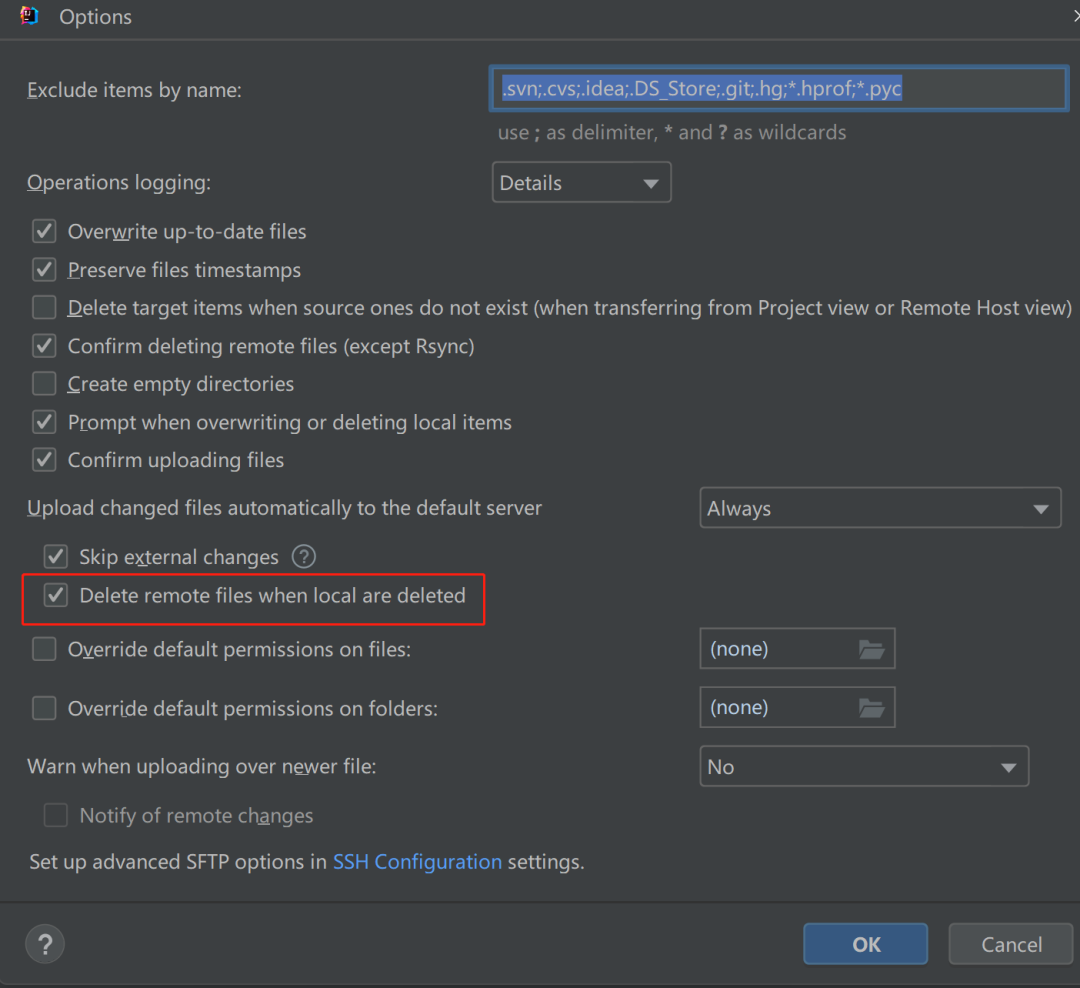 勾选上文件删除的同步: