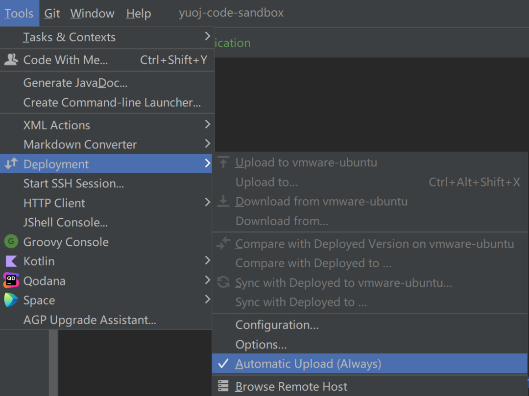 然后点击 Tools => Development => Automatic Upload,开启自动同步:
