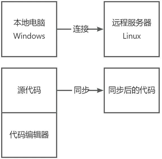 第一种远程开发方式是 远程部署,就像我们真实做项目时,先在本地用代码编辑器完成开发,再把代码放到 Linux 服务器上去部署一样。远程部署的思路是在本地编写代码,然后把本地的代码文件定期同步到 Linux 服务器,再用本地电脑操作远程服务器完成部署和运行。