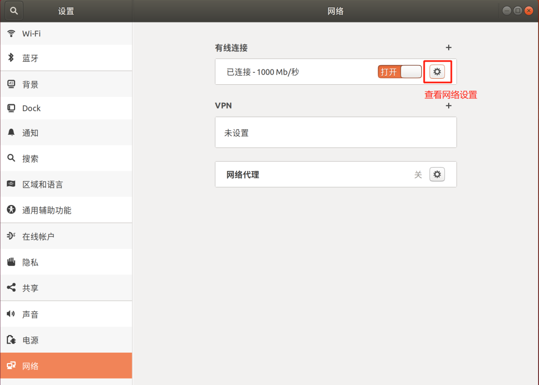 首先在设置中搜索网络,点击查看网络设置: