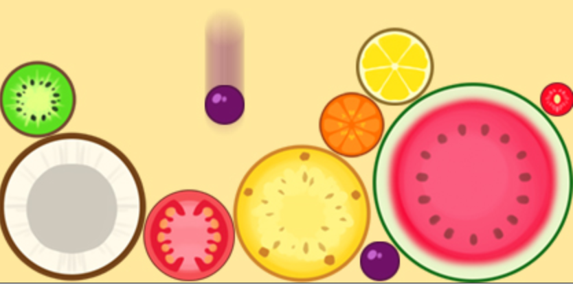 大水果合成小水果听起来很有趣,即可以把游戏 “倒着玩”,两个西瓜合成椰子,最终合成葡萄即胜利!✌️