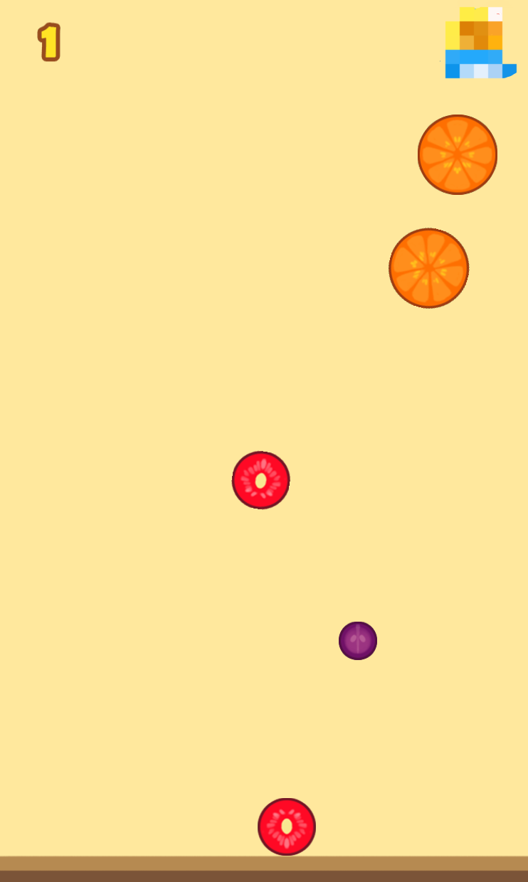 游戏的过程是:点击鼠标 => 水果下落 => 水果碰撞 => 计算分数 => 展示分数