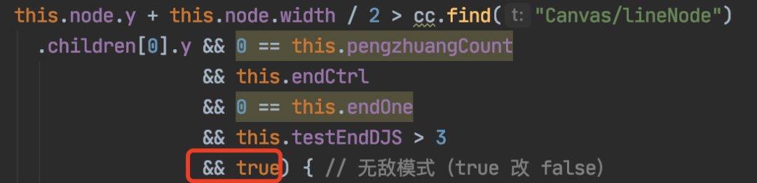 那就在代码中搜索 "end"(结束),果然找到了下面这串判断逻辑,运算结果为 true 则游戏结束,为 false 则继续。