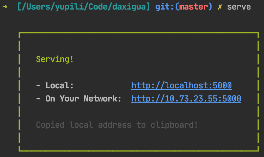daxigua),启动 serve:serve启动成功后,打开浏览器访问