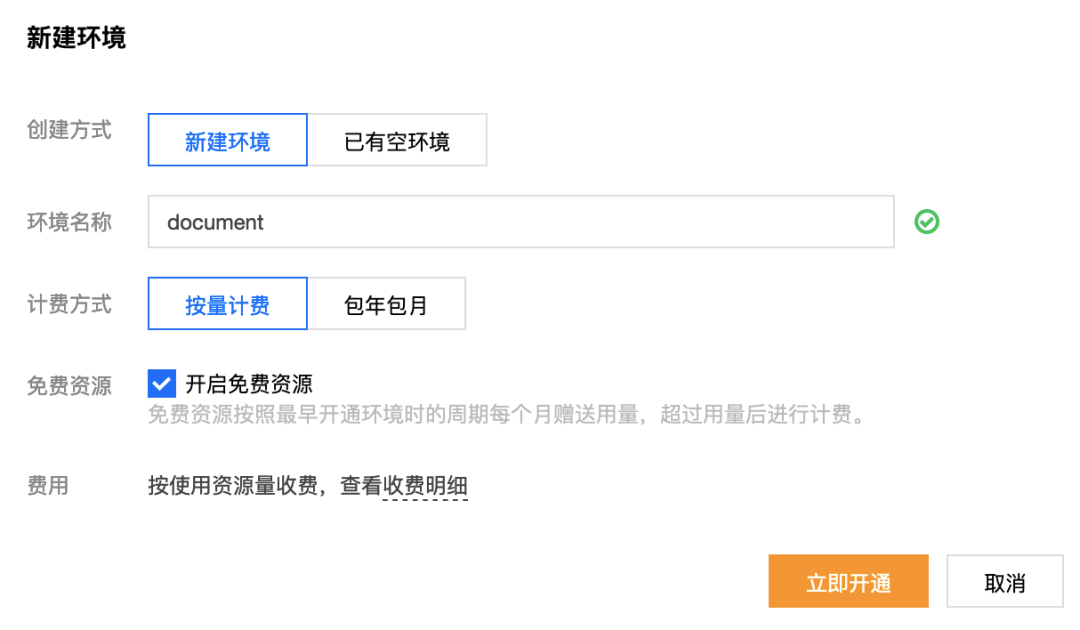 点击立即开通,喝杯 ☕️,稍等片刻即可创建完成。