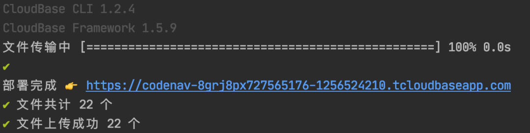 接着,在 index.html 所在目录中(我的是 daxigua),执行 cloudbase 的 deploy 命令将目录中的网站文件全部发布: